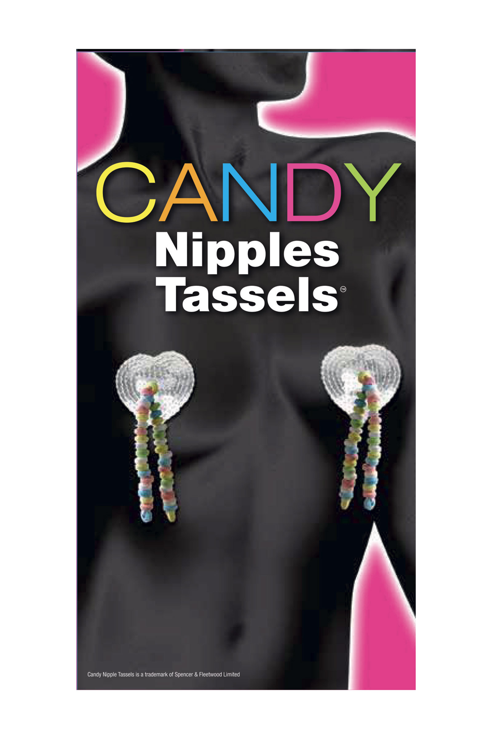 Cache-tétons ornés de 2 franges composées de bonbons à croquer.