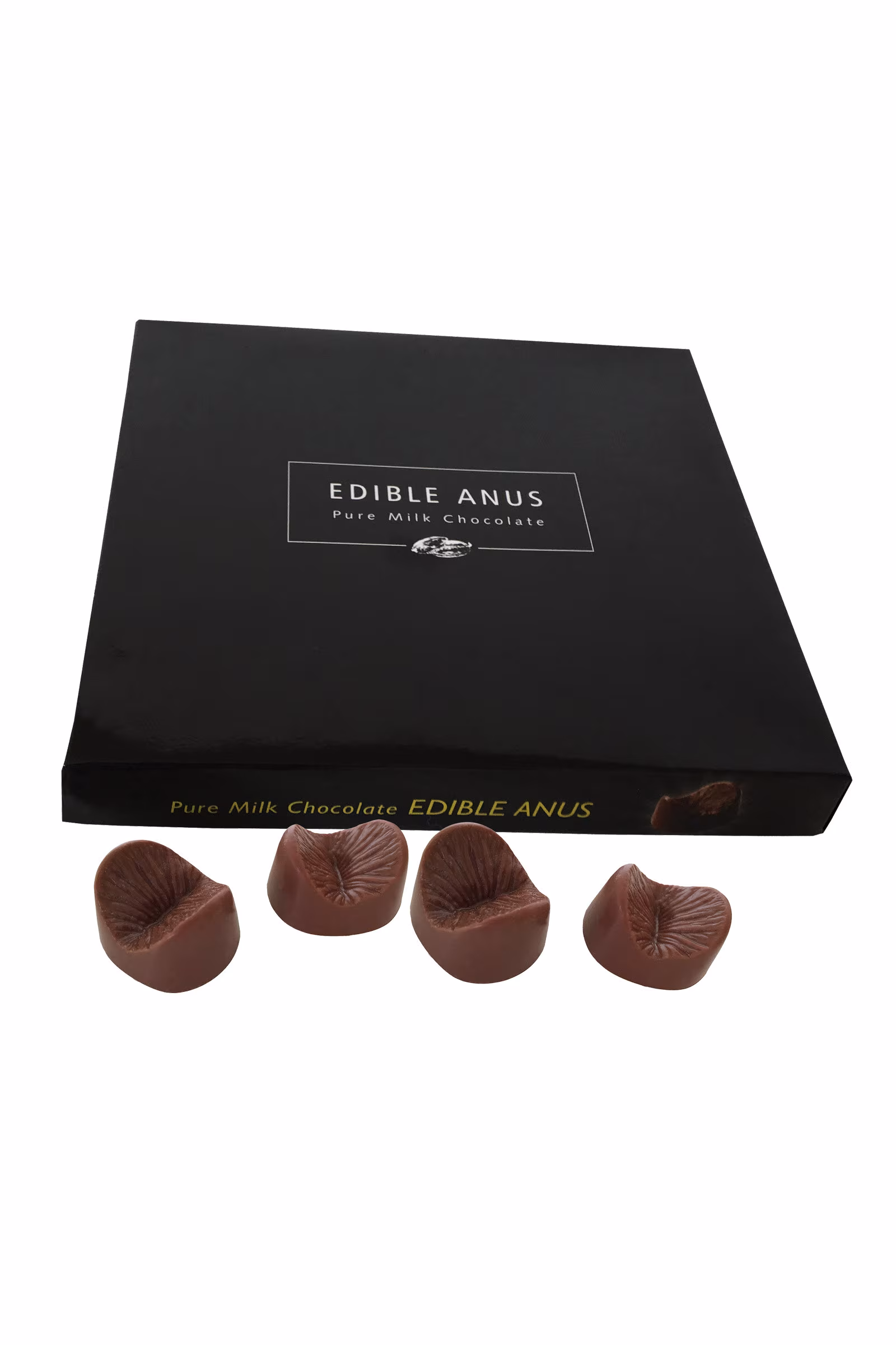 Boite de chocolats au lait en forme d'anus.