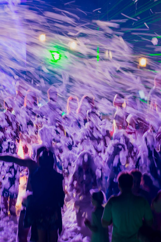 Voilà que le dj annonce une nouvelle salve de mousse, elle nous arrive mi-ventre, c’est effectivement très drôle de danser dans la mousse, on aurait eu tord de ne pas essayer.