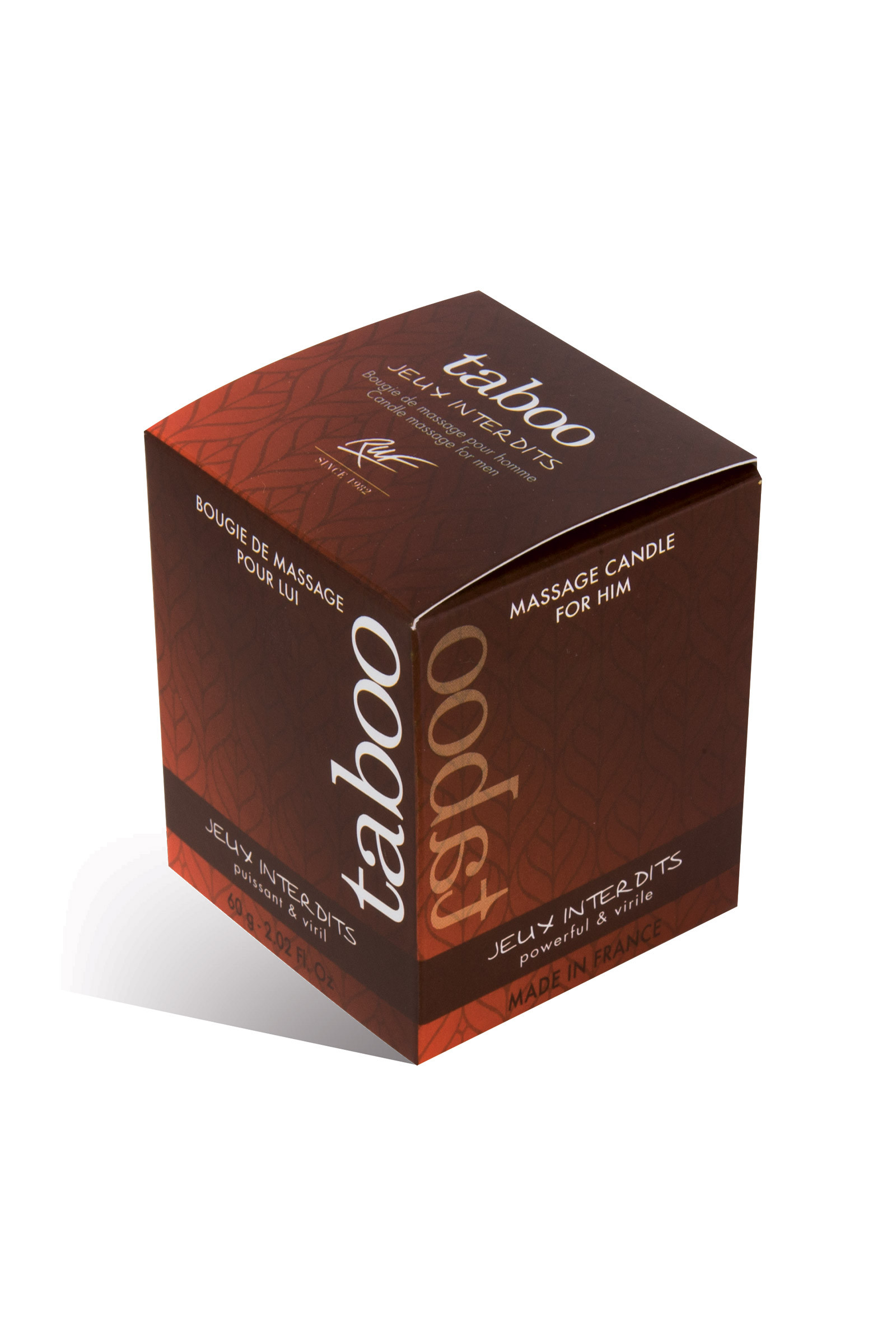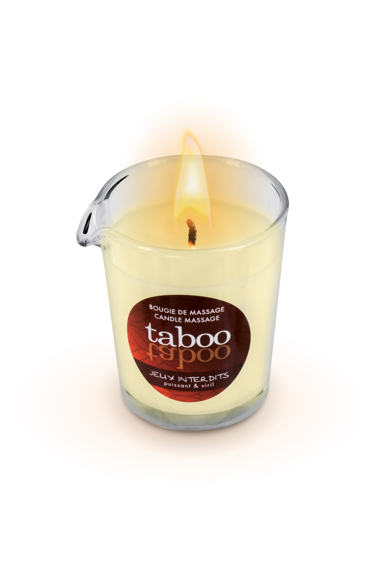 Bougie de massage puissantes et virile pour homme Taboo Jeux interdits au senteur de lichen. Fabrication française. Huile 100% d'origine végétale.