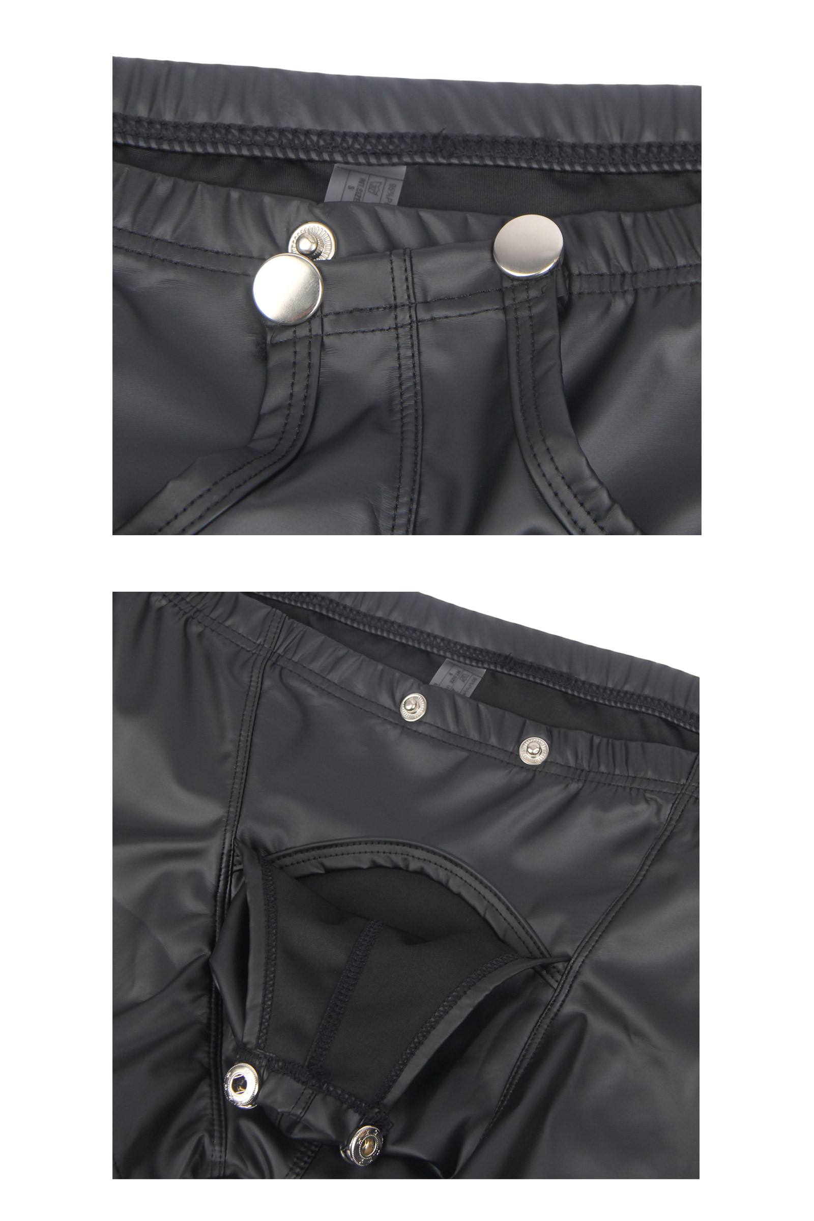 Alliez séduction et audace avec ce boxer noir sexy pour homme de la marque Paris Hollywood. Fabriqué dans une matière effet cuir brillante, il épouse parfaitement les formes et met en valeur votre silhouette. Son entrejambe ouvert avec boutons de pression offre un accès rapide et un style ultra-érotique, idéal pour pimenter vos moments intimes.