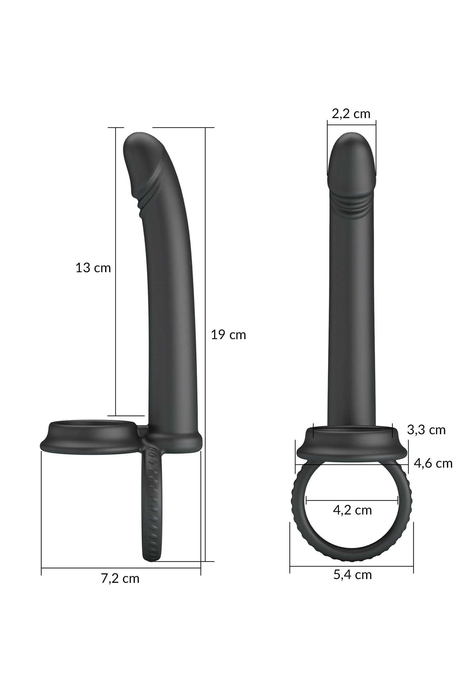 - Diamètre de l’anneau pénien : 4,2 cm (intérieur) / 5,4 cm (extérieur)