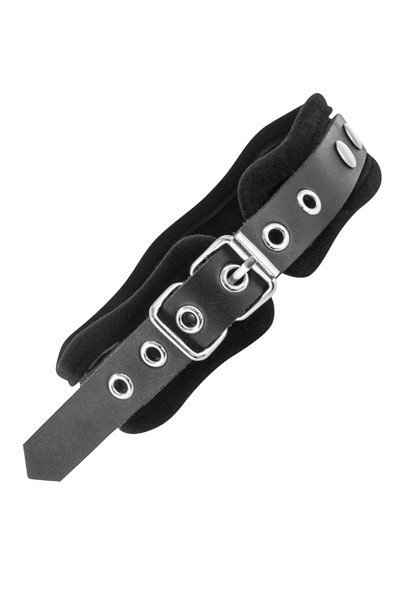 Collier en cuir noir de très haute qualité avec une finition laqué. Parfaitement réglable et décoré de clous (non pointus) avec strass. Ce collier fétichiste est assez épais et muni d'un doublure style feutre pour la douceur et le confort sur la peau.