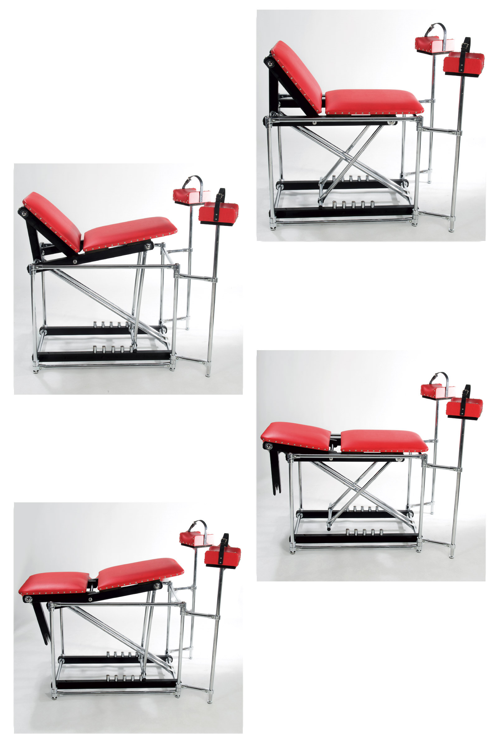 Cette table gynécologique trés confortable, est idéale pour des auscultations très intimes. Le dossier et l’assise sont articulés, ce qui permet de vous retrouver de la position assise à la position allongée. La manipulation se fait très facilement et en toute sécurité. Le châssis en ciseau possède 5 sections de réglage situées à la base de la structure. Les 2 repose-jambes sont recouverts de la même matière que la table et sont équipées de 2 sangles réglables en cuir
