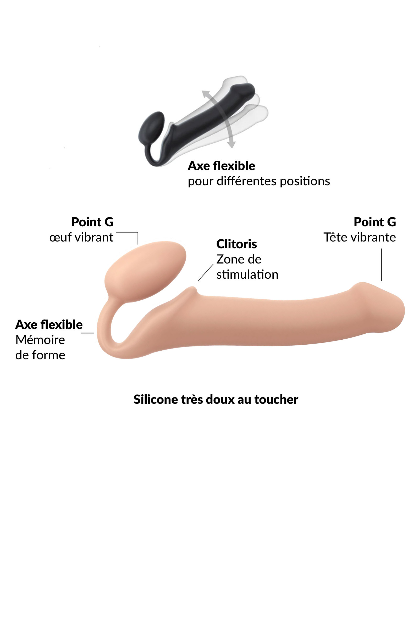 Ce gode ceinture est fabriqué en silicone de très haute qualité, est très agréable à porter. Sa texture est douce comme du velours. Ce sextoy possède un œuf à insérer dans le vagin et dont la forme spécifique est spécialement conçu pour stimuler le point G. L'axe qui relie l'œuf au gode est flexible et à mémoire de forme, ce qui permet d'avoir le bon angle entre vous et votre partenaire.