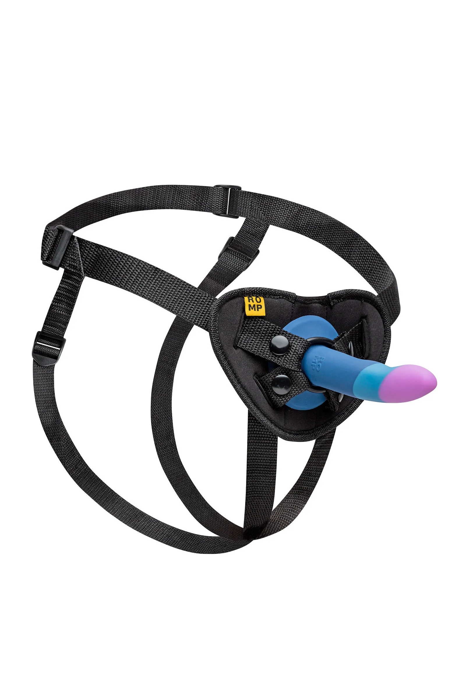 Découvrez Romp Piccolo Kit Pegging, un gode ceinture avec harnais réglable pour femme