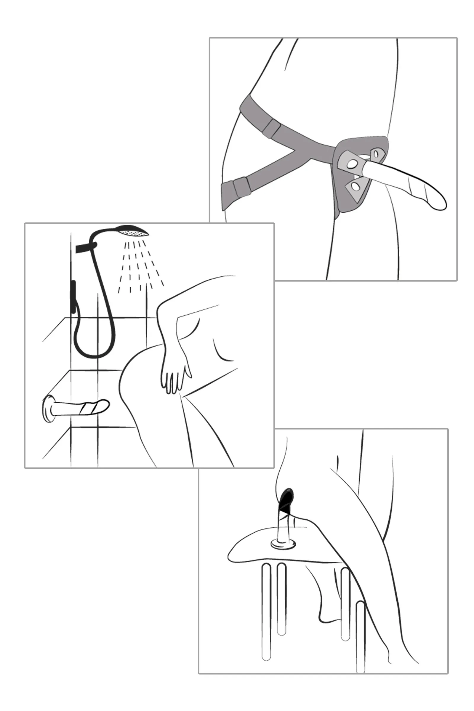 Un gode ventouse et un harnais, pour un plaisir sans les mains