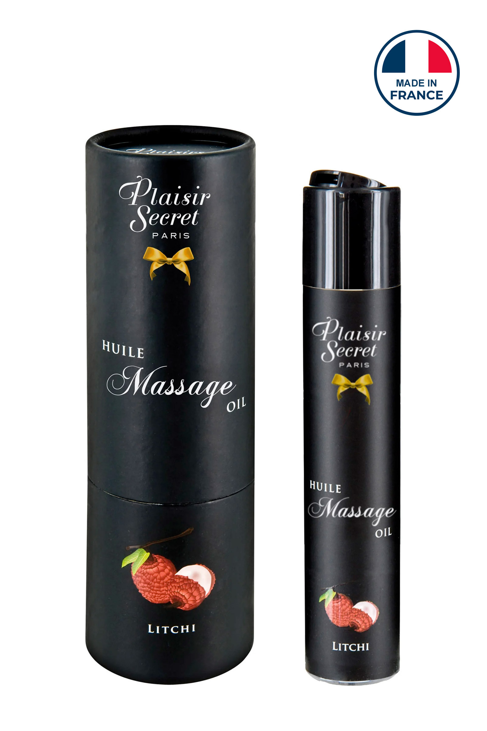 L'huile de massage gourmande Plaisir Secret Litchi est réalisée à partir d'huiles naturelles 100% végétales. Les effluves de litchi créer une ambiance propice au désir et à l'amour.