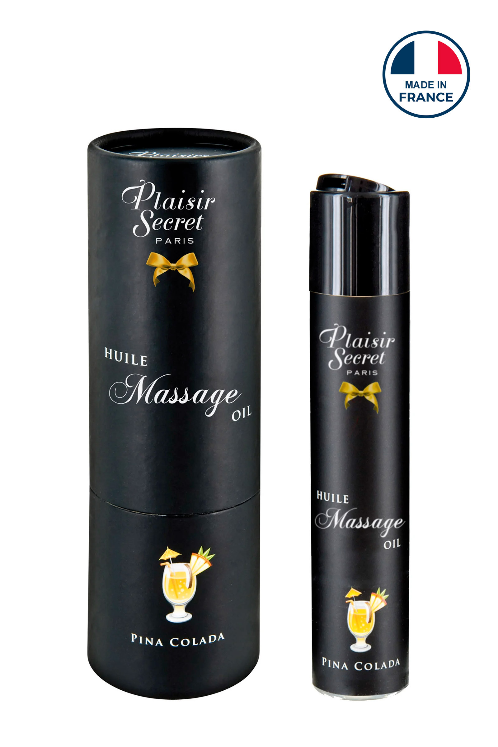 L'huile de massage gourmande Plaisir Secret Pina Colada est réalisée à partir d'huiles naturelles 100% végétales. Les effluves de Pina Colada créer une ambiance propice au désir et à l'amour.