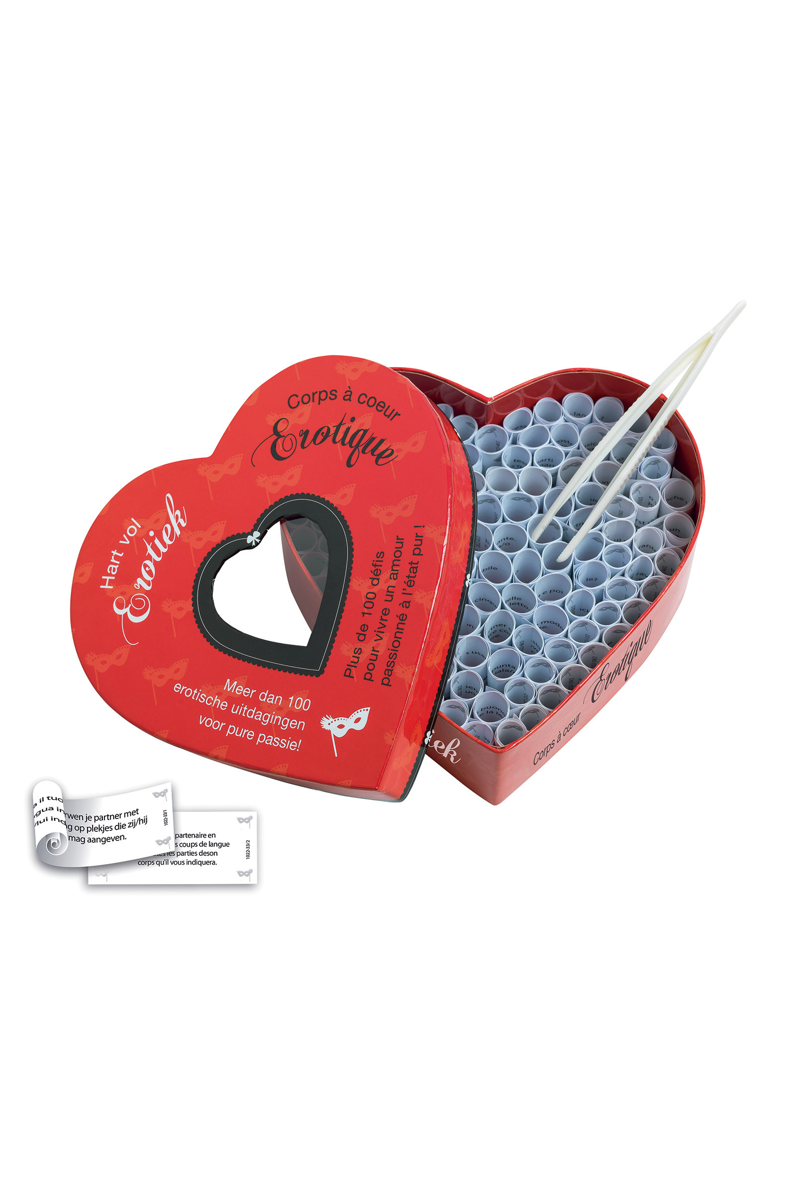 Un jeu à deux très excitant pour consommer l’autre sans modération. Saisissez à tour de rôle un gage à l’aide de la pincette. Séduction ludique, préliminaires tendres, fantasmes coquins ou défi érotique... Que va-t-il vous arriver ?