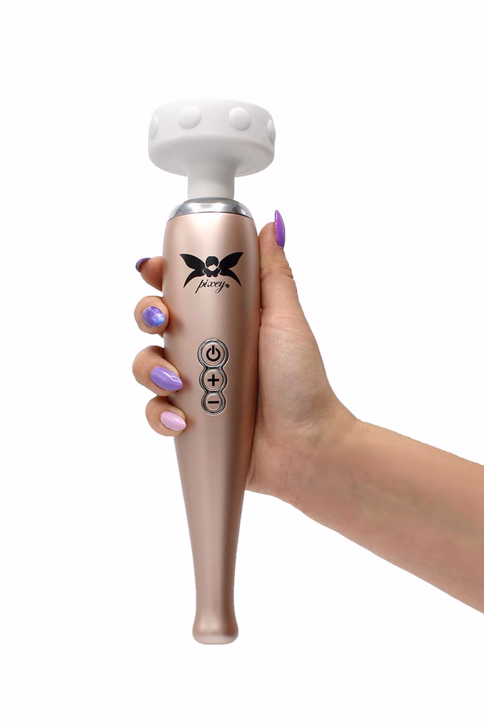 Envie d’explorer tous vos désirs ? Avec le Wand Hammerhead de Pixey, tout devient possible ! Découvrez le tout nouveau wand “Hammerhead” de Pixey au design moderne et féminin couleur Rose Gold, qui vous fera vibrer de plaisir ! Doté d’un moteur vibrant puissant, le wand "Hammerhead" permet de réaliser des massages inoubliables et très intenses. Il dispose d’une tête plate façon “marteau” avec des détails perlés autour de la tête, pour une stimulation plus précise ! Facile à utiliser, le Wand Hammerhead de Pixey a 3 boutons afin de basculer les 5 modes de pulsations et dispose d'une prise en main ergonomique pour une expérience orgasmique optimale.