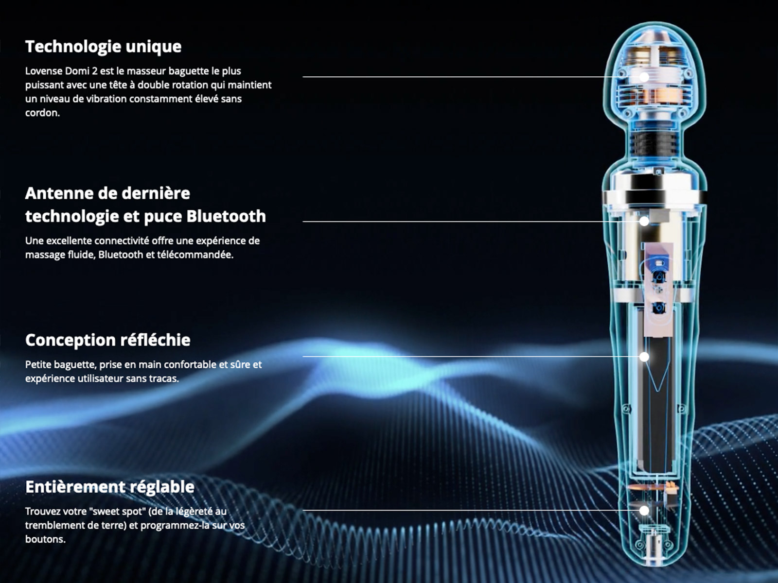 Le Domi 2 de Lovense est le seul vibromasseur wand entièrement programmable. Grâce à cette particularité, votre plaisir est entièrement entre vos mains. Et aussi un petit peu entre vos cuisses… !