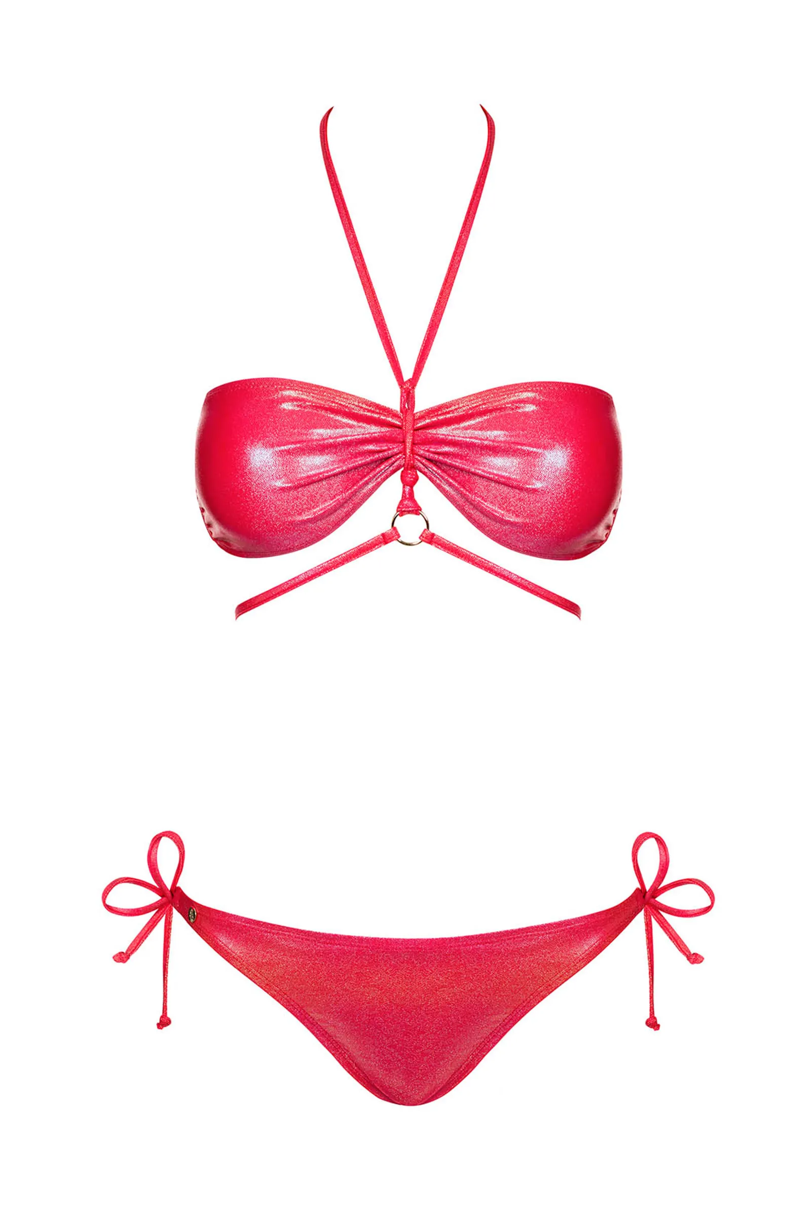 Un joli bikini rouge assez sexy et chic dans un tissu avec une légère brillance.
