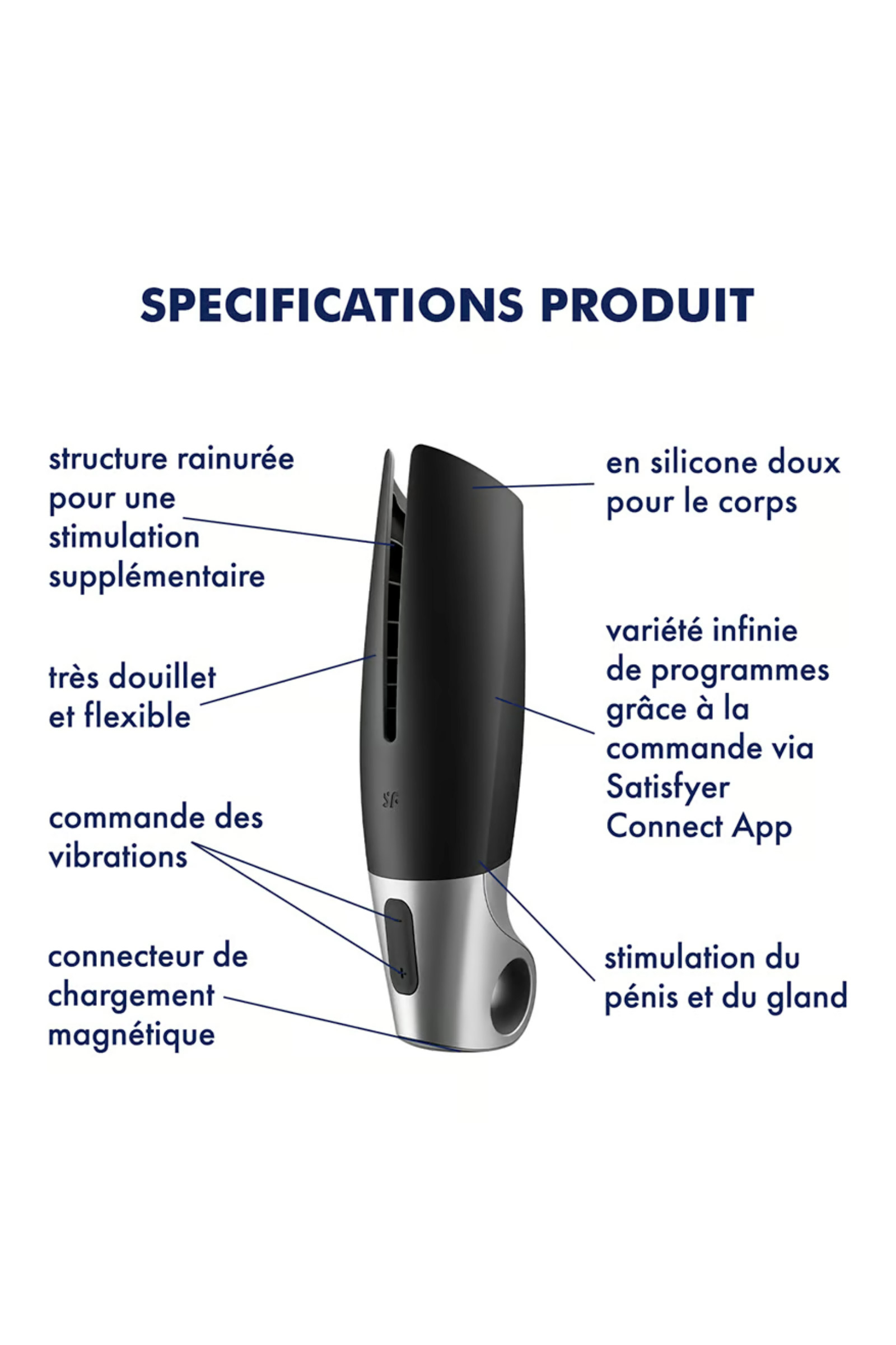 Contrairement aux masturbateurs traditionnels, le Power Masturbator offre une expérience connectée unique. Son moteur puissant, contrôlable via l'application Satisfyer, vous permet de personnaliser les mouvements de votre sextoy préféré.