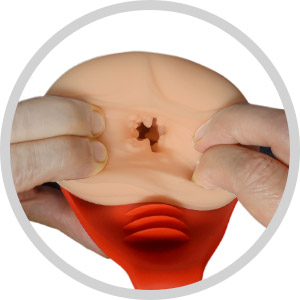 Appliquez généreusement du lubrifiant à base d'eau sur votre pénis et à l'intérieur du masturbateur pour faciliter l’insertion de votre membre dans le jouet.