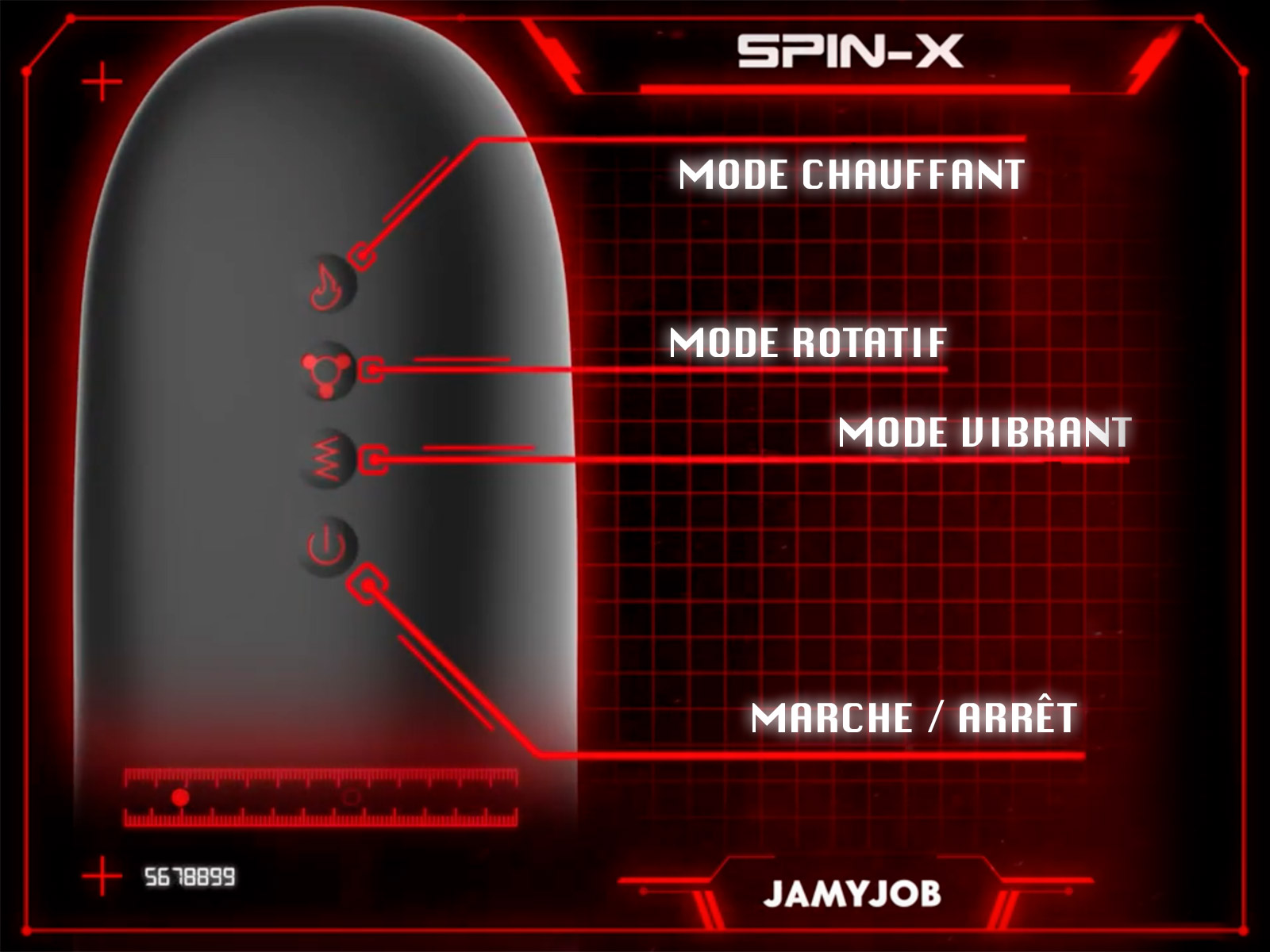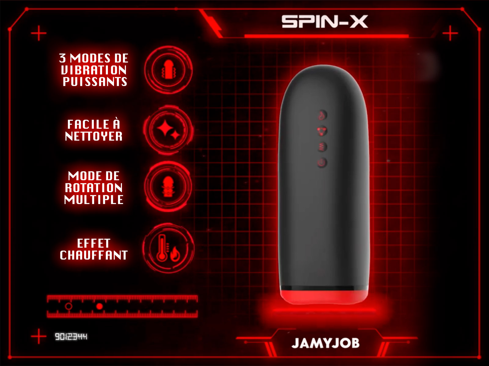 Le masturbateur Jamyjob Spin-X diffuse 3 modes de vibration sur l’ensemble du pénis pour un plaisir intense.