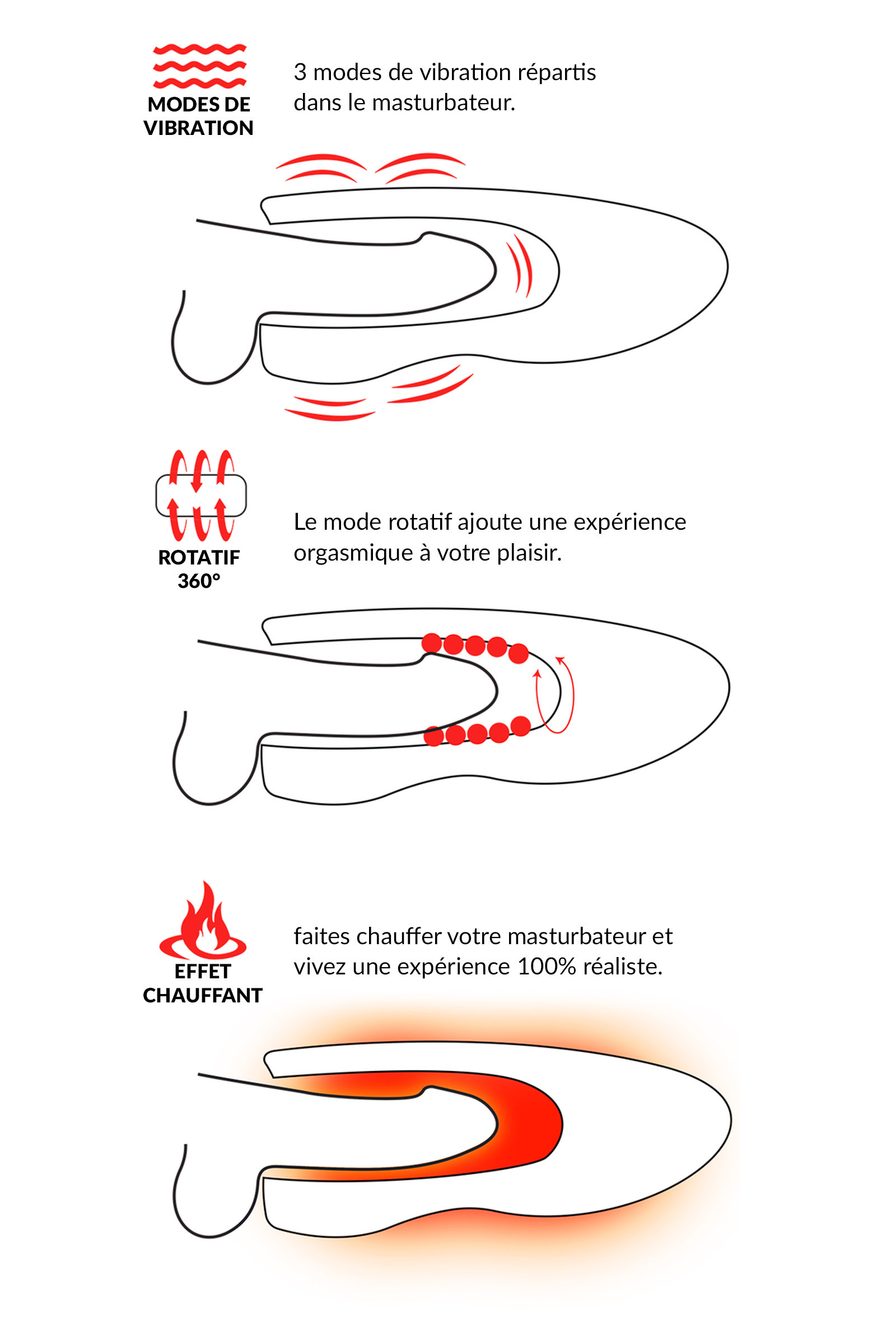 Caractéristiques | Chauffant Rotatif Vibrant Waterproof |