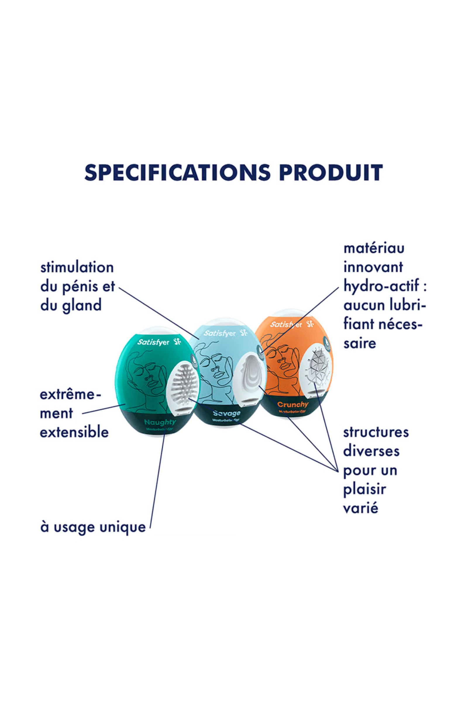Satisfyer Egg Naughty, Savage et Crunchy, coffret de 3 masturbateurs