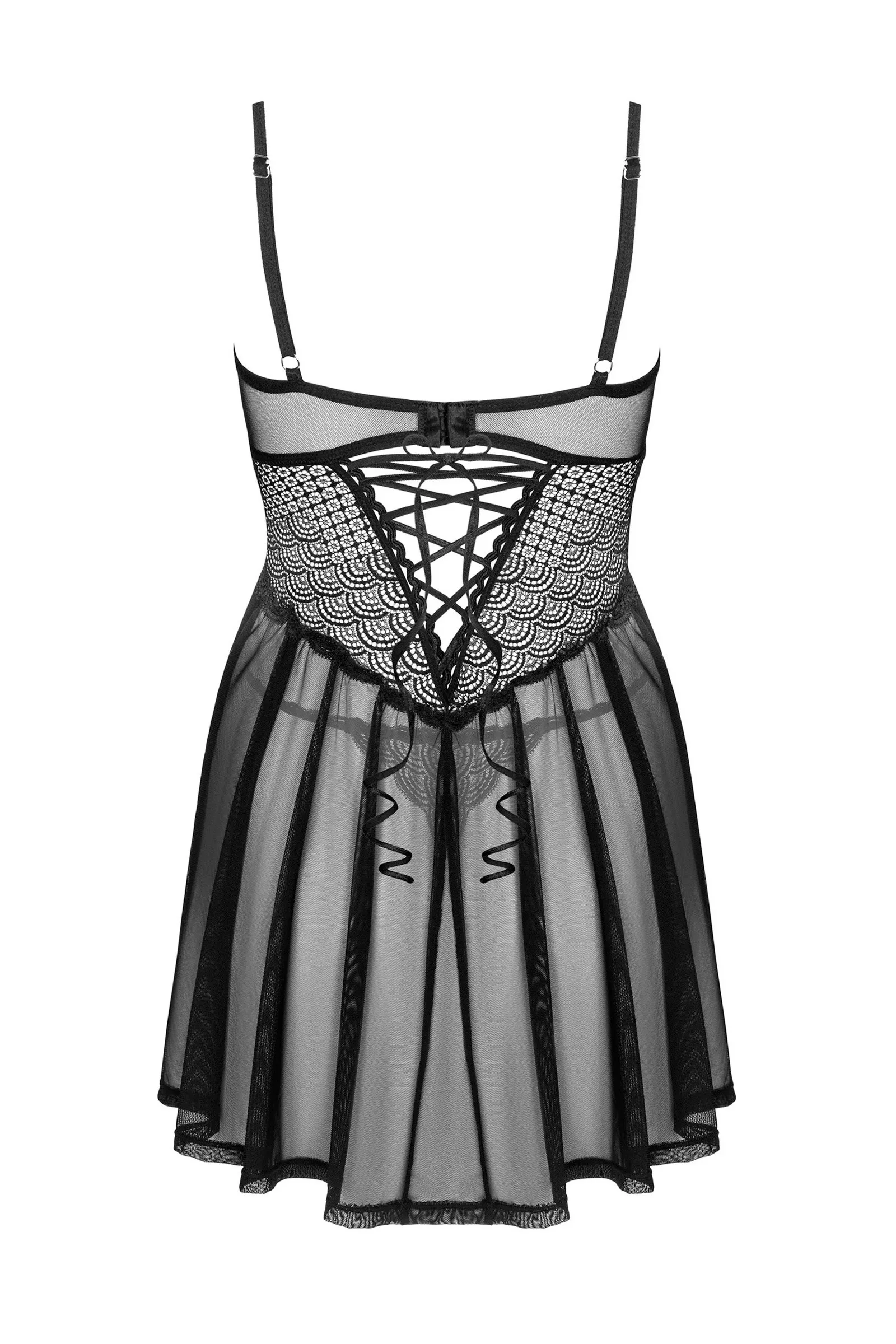 Cette pièce envoûtante, délicatement transparente, est un hommage à l'élégance et à la sensualité. Son décolleté, orné de dentelle noire sophistiquée, attire le regard tout en restant subtilement mystérieux. Une coupe fluide et confortable qui épouse vos courbes avec grâce, pour un mélange parfait de charme et de bien-être.