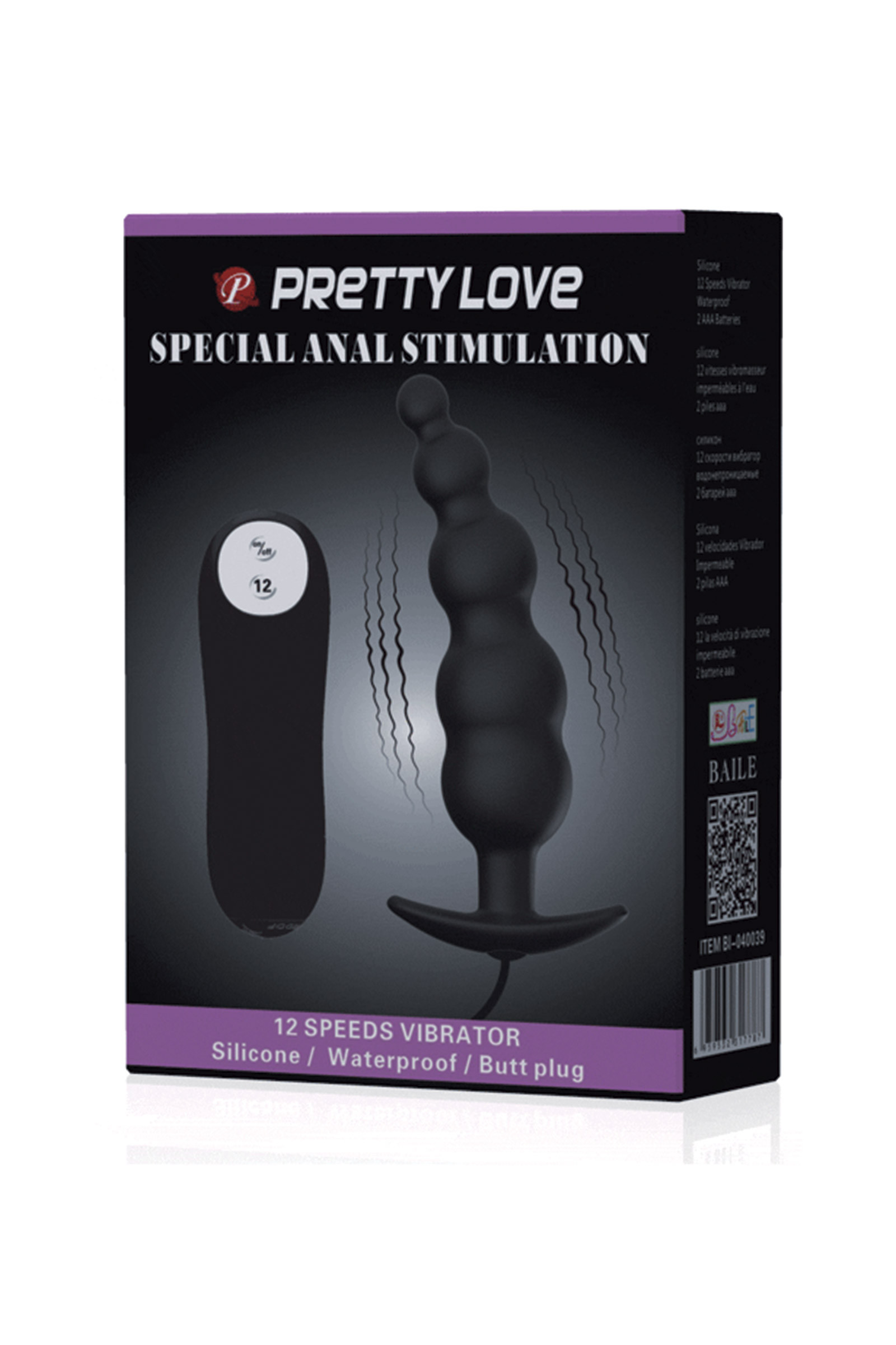 Avec ses boules d'un diamètre progressif, ce plug anal vibrant de la marque Pretty Love est aussi bien adapté à la stimulation anal qu'à la stimulation de la prostate. A l'aide de sa poignée, vous dirigez facilement la profondeur de pénétration. Elle est également très utile pour le retrait lent ou rapide au moment de l'orgasme (ce qui aura l'effet de le décupler). Introduisez progressivement, boule par boule, ce stimulateur anal puis activez l'un des 12 modes de vibration pour un massage anale orgasmique.