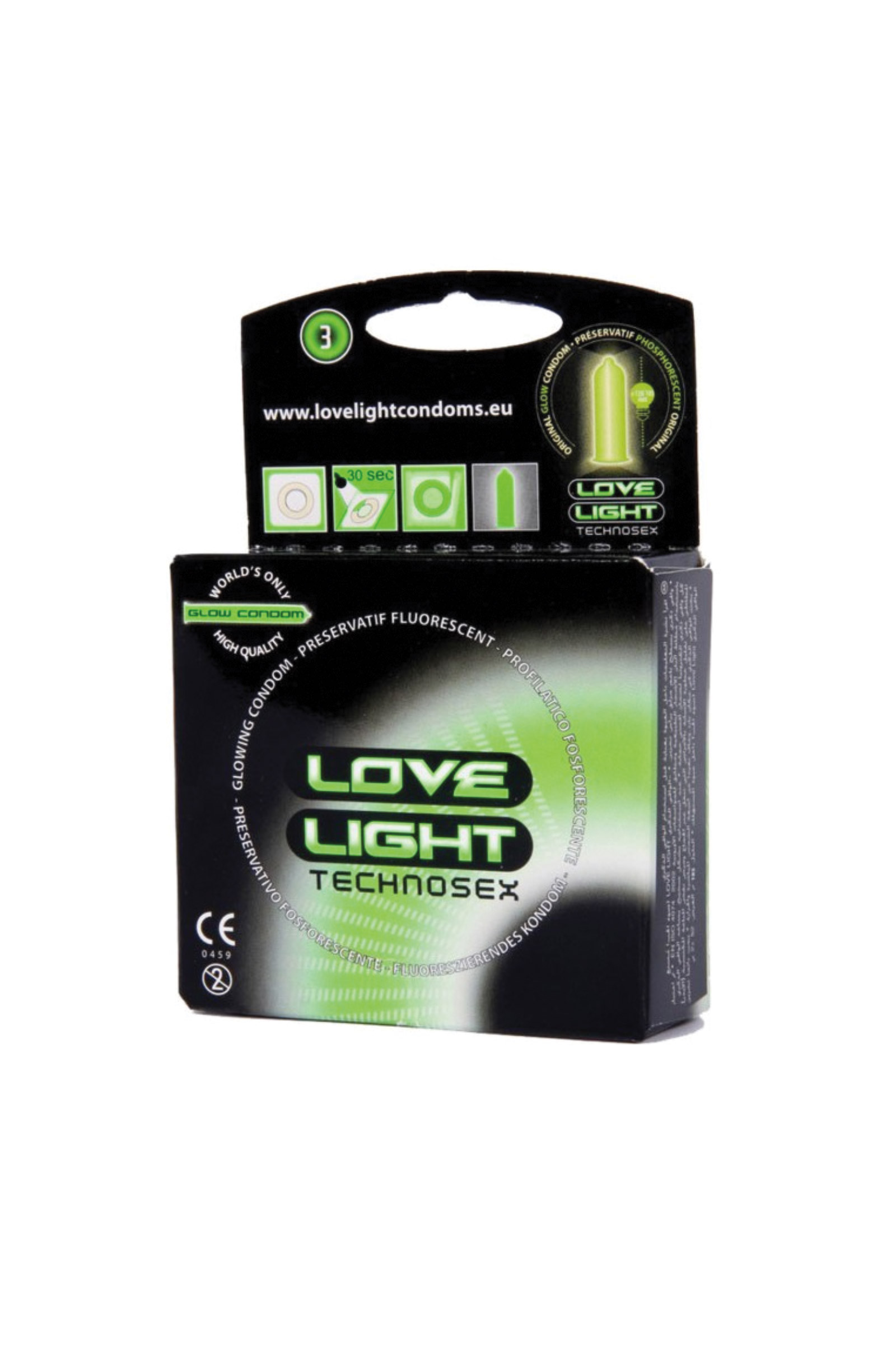 Préservatif phosphorescent Love Light Technosex par boîte de 3. Exposez à la lumière pendant 30 secondes et votre préservatif va briller dans le noir. Lubrifié avec réservoir et surface lisse. Fabriqué en latex naturel. Chaque préservatif est testé électroniquement pour garantir une sécurité maximale. Conforme à la norme européenne EN ISO 4074:2002.