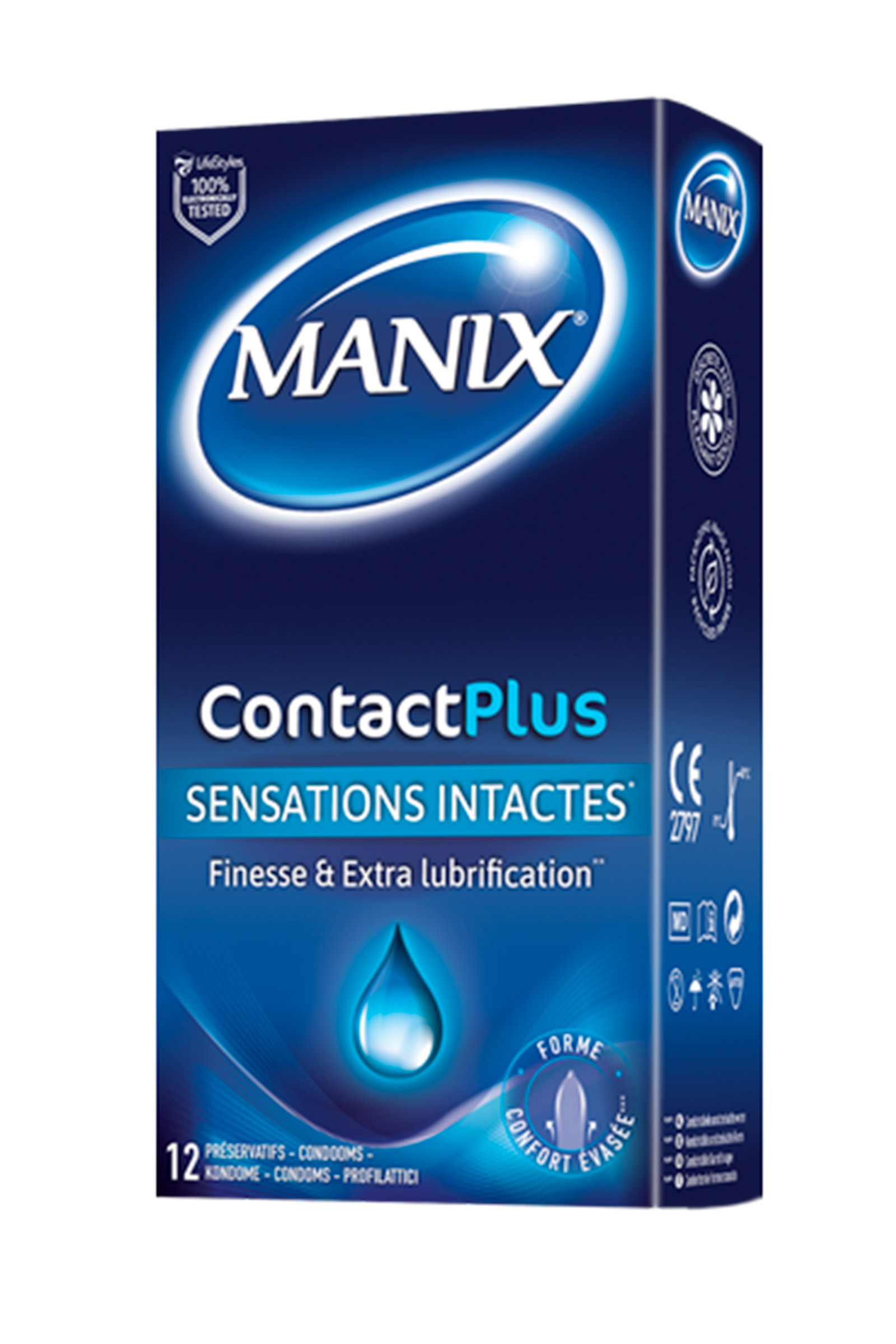 Découvrez les sensations ultra naturelles avec les préservatifs Manix ContactPlus Manix ContactPlus, c’est la référence des préservatifs de haute qualité, dotés d’une finesse incomparable pour des sensations incroyables . Les préservatifs Manix Contact Plus sont encore plus confortables grâce à leur lubrification ultra douce. Leur forme évasée procure un confort absolu et des sensations intactes et ultra naturelles. Les préservatifs Manix, utilisés correctement, sont efficaces contre la grossesse, le VIH/SIDA ou les infections sexuellement transmissibles. Aucune méthode de contraception ne peut garantir une protection à 100%.