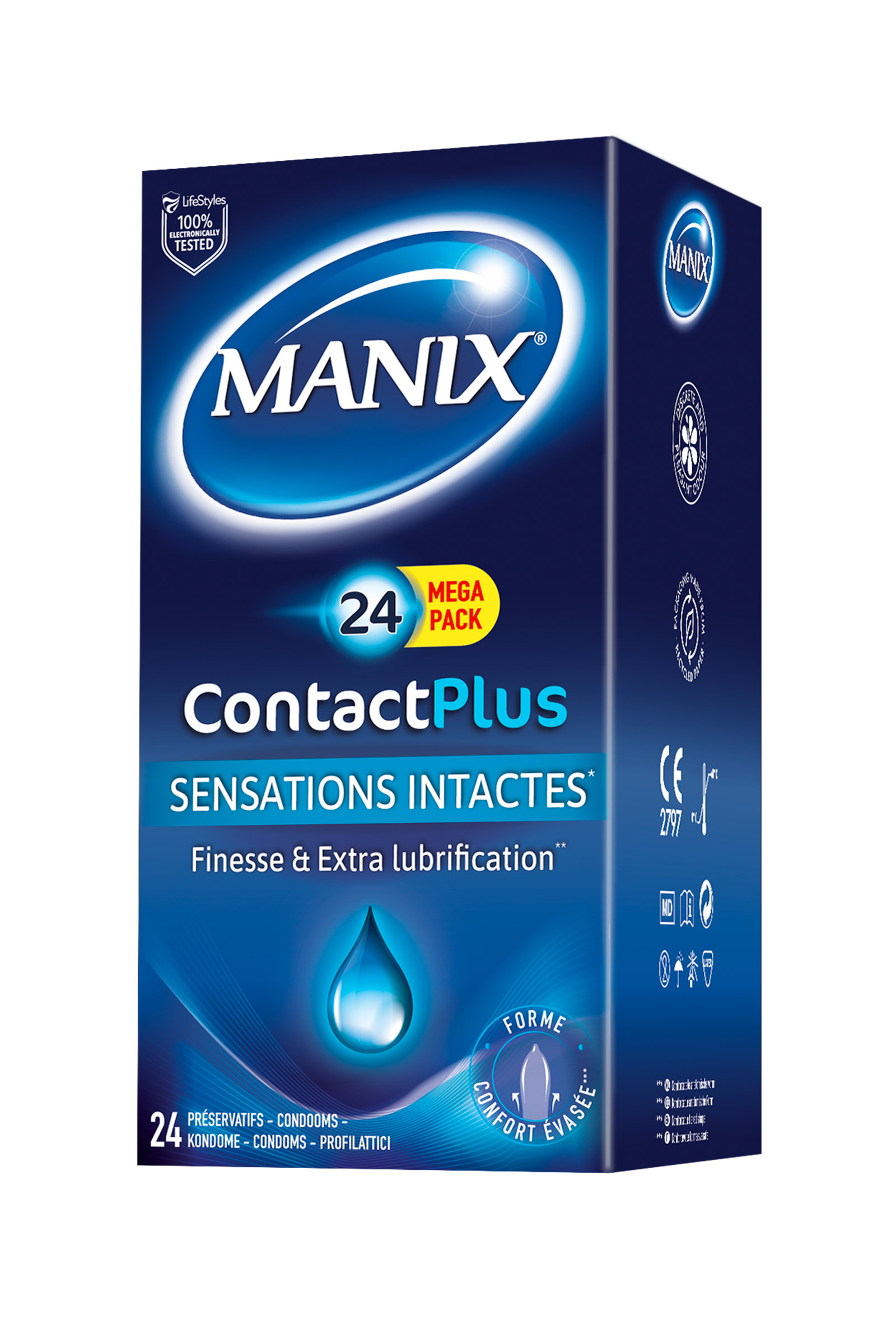 Découvrez les sensations ultra naturelles avec les préservatifs Manix ContactPlus Manix ContactPlus, c’est la référence des préservatifs de haute qualité, dotés d’une finesse incomparable pour des sensations incroyables . Les préservatifs Manix Contact Plus sont encore plus confortables grâce à leur lubrification ultra douce. Leur forme évasée procure un confort absolu et des sensations intactes et ultra naturelles. Les préservatifs Manix, utilisés correctement, sont efficaces contre la grossesse, le VIH/SIDA ou les infections sexuellement transmissibles. Aucune méthode de contraception ne peut garantir une protection à 100%.
