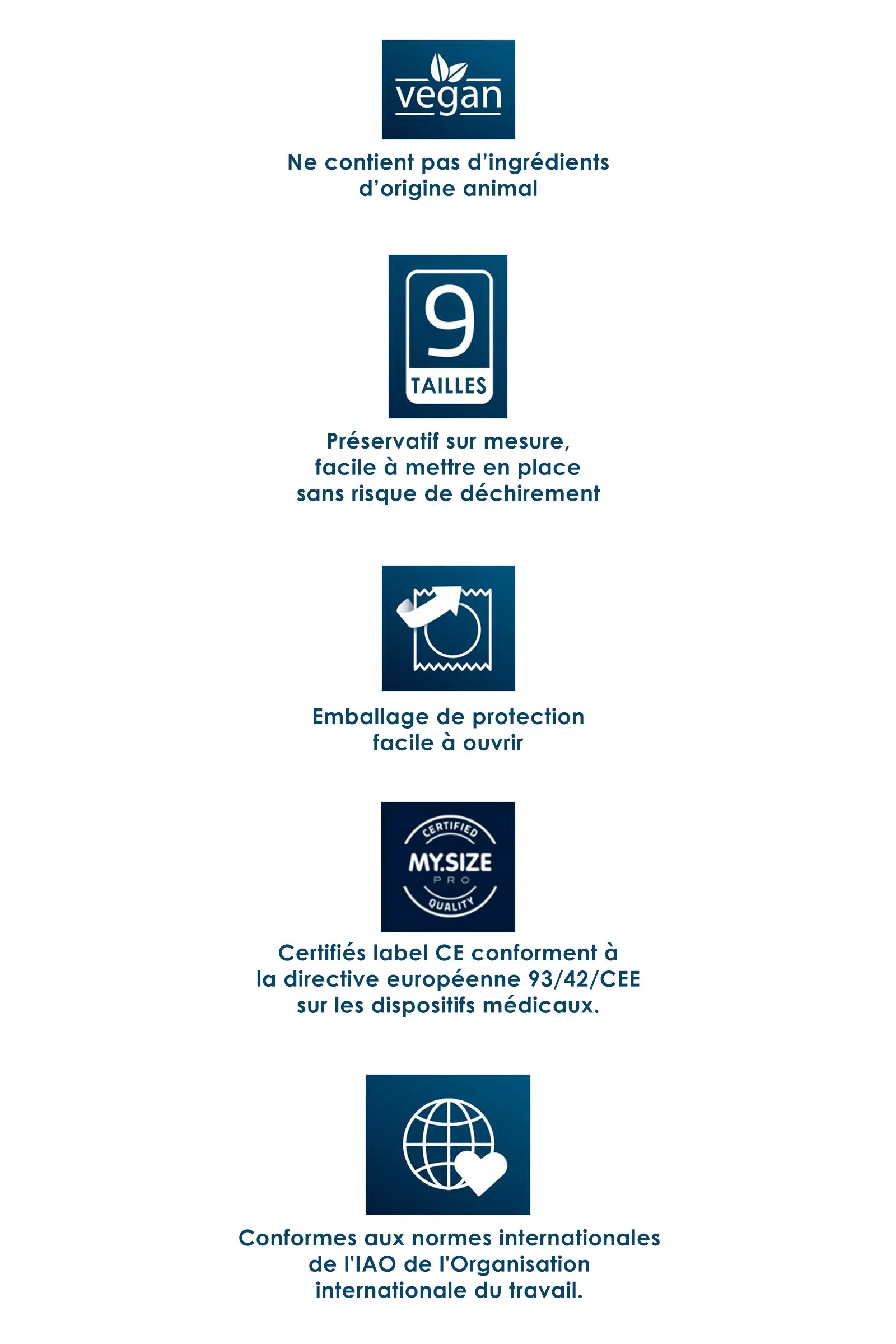 Les préservatifs My Size Pro, utilisés correctement, sont efficaces contre la grossesse, le VIH/SIDA ou les infections sexuellement transmissibles. Aucune méthode de contraception ne peut garantir une protection à 100%.