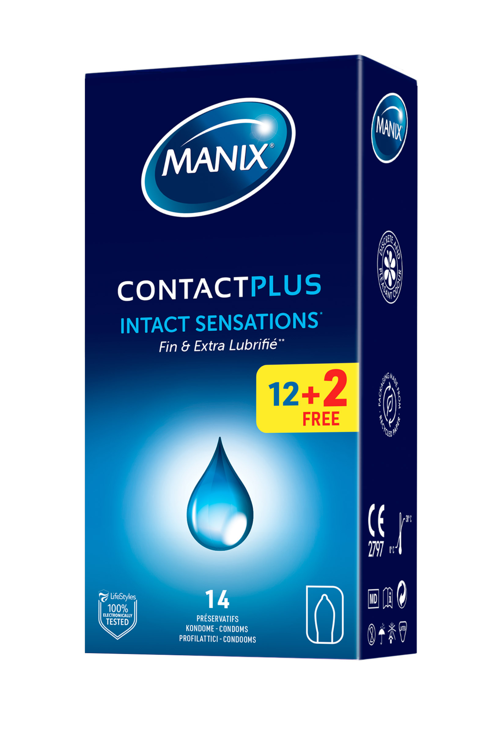 14 préservatifs fins et extra lubrifiés Manix Contact Plus