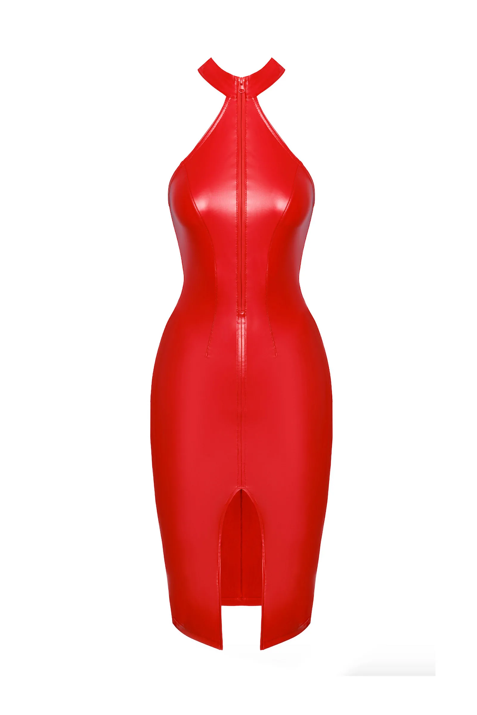 Faites sensation avec cette robe moulante en matière wetlook rouge éclatant, conçue pour attirer tous les regards. Son zip avant vous permet de jouer avec les ouvertures et d’ajuster l’allure selon vos envies, pour un look à la fois audacieux et sophistiqué. La matière effet cuir brillant épouse vos formes, créant une silhouette sculptée et sensuelle, tandis que la couleur rouge intense ajoute une touche de passion.