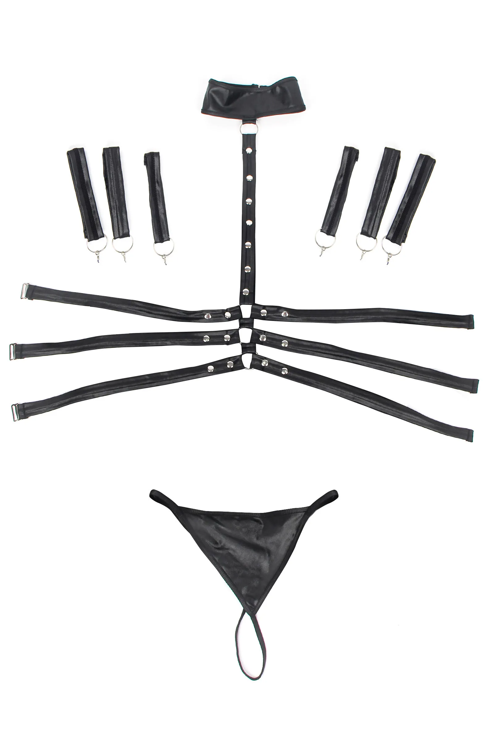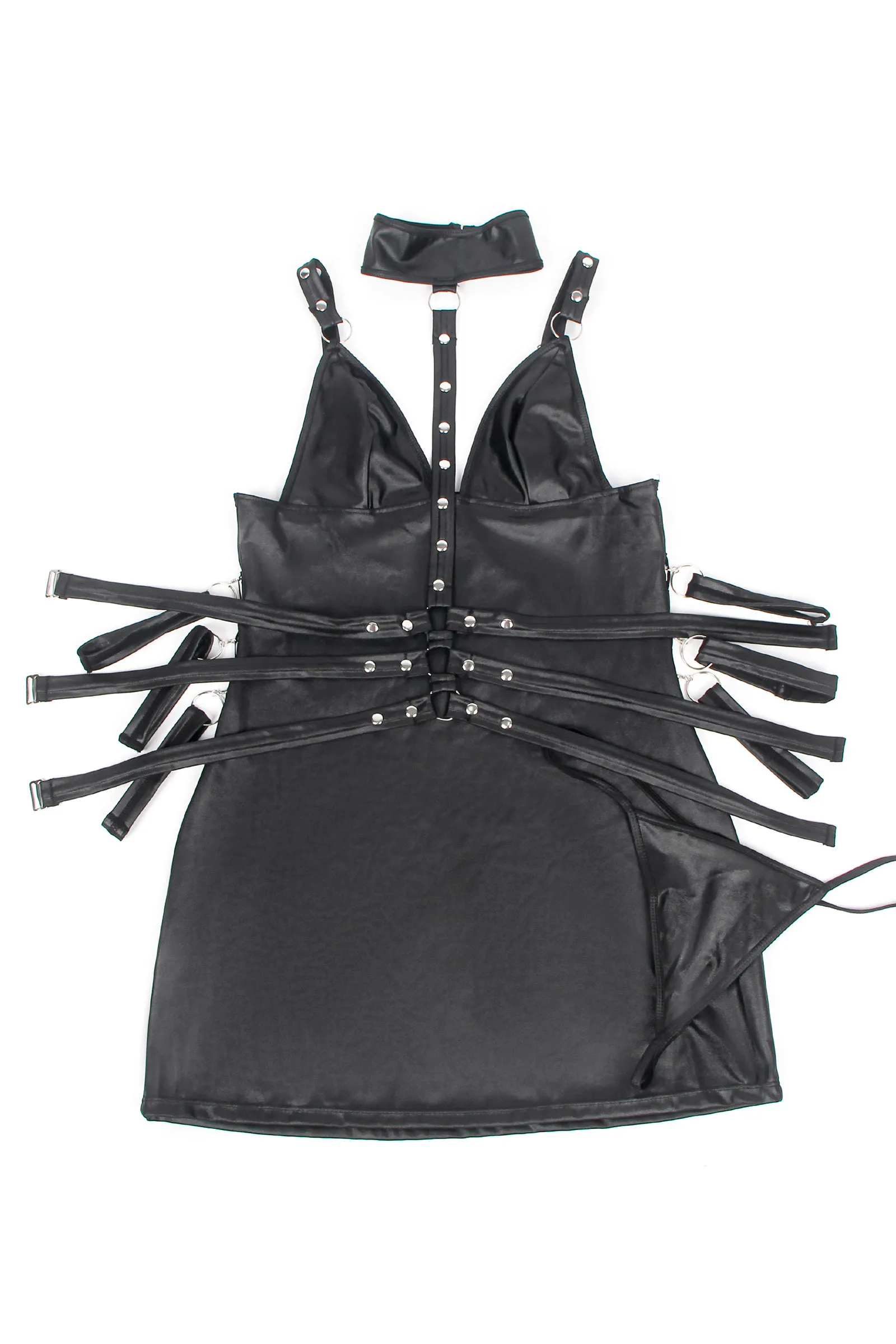 Affirmez votre sensualité avec cette robe courte et moulante au style bondage, accompagnée de son harnais intégré et de menottes assorties. Conçue pour épouser parfaitement les courbes du corps, cette robe combine un design audacieux avec des éléments captivants pour un look résolument provocant. Le harnais ajoute une touche de séduction, tandis que les menottes, attachées avec élégance, complètent cette tenue pour des moments intenses et glamour. Idéale pour celles qui osent exprimer leur pouvoir de séduction avec assurance.