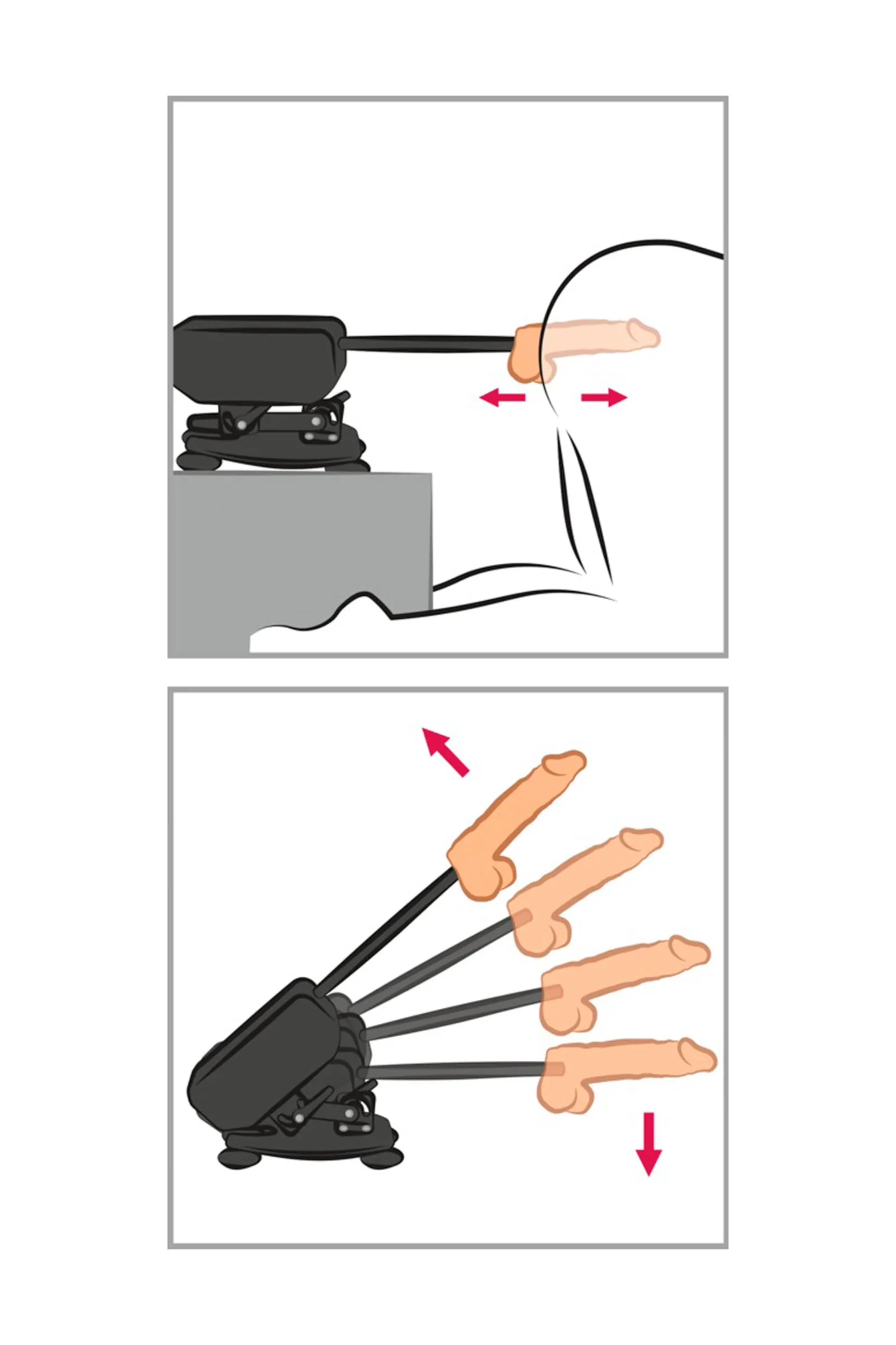 Cette sex-machine avec télécommande vous fera trembler de plaisir . Elle est équipée de deux godemichets et d'un masturbateur pour offrir une gamme infinie de sensations inoubliables. Cette petite merveille légère et puissante se fixe solidement sur toute surface lisse grâce à ses ventouses et peut être ajustée selon l'angle de l'utilisateur pour des mains libres inoubliables.