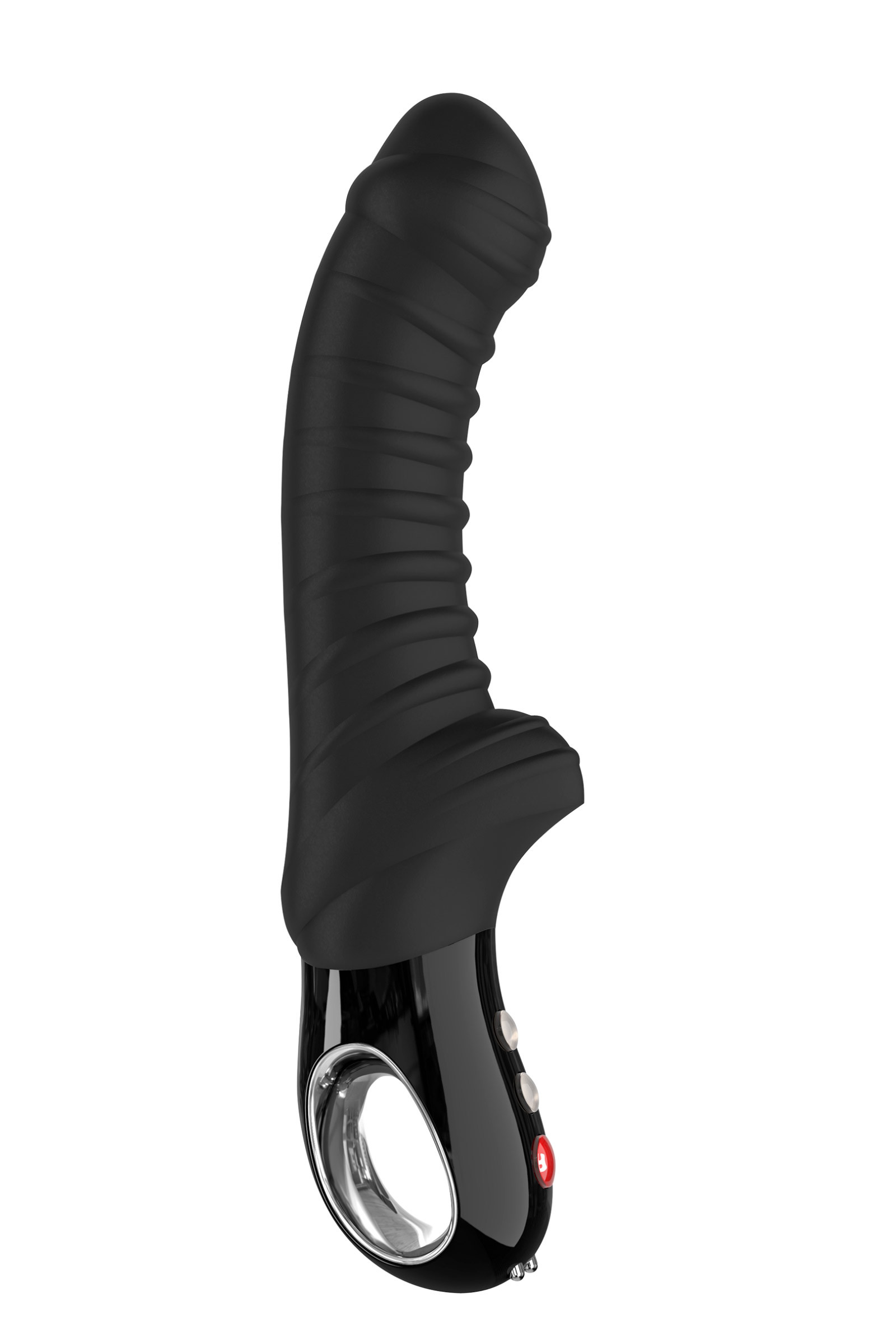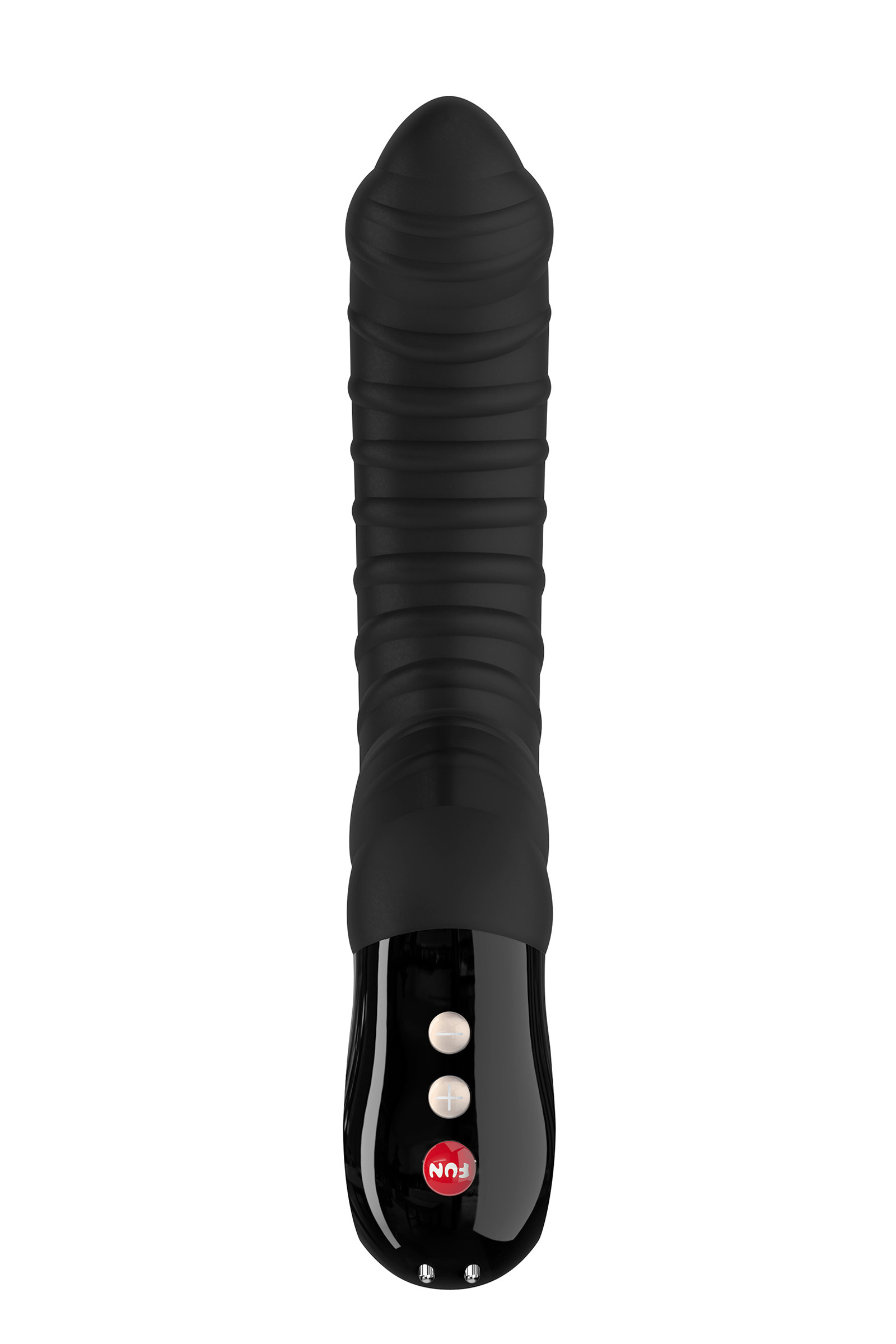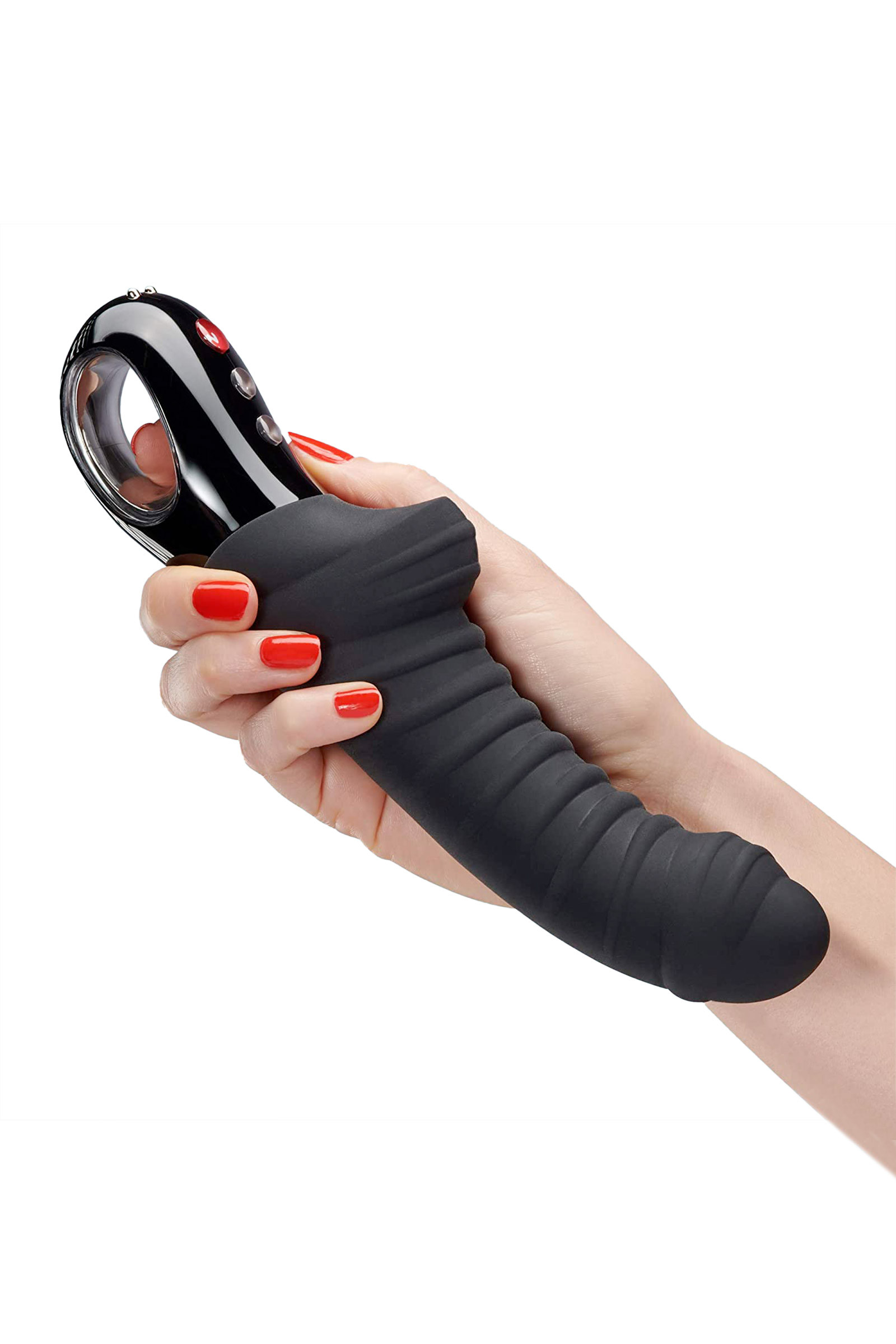 Un vibromasseur noir structuré pour que la stimulation soit plus forte. Une légère courbure et une texture douce et souple afin de favoriser le contact avec le point G. Sa poignée permettra de le diriger d'un seul doigt pendant que votre pouce actionnera les touches intuitives. Ce vibromasseur surpuissant noir se recharge à l'aide d'un contact magnétique fourni.