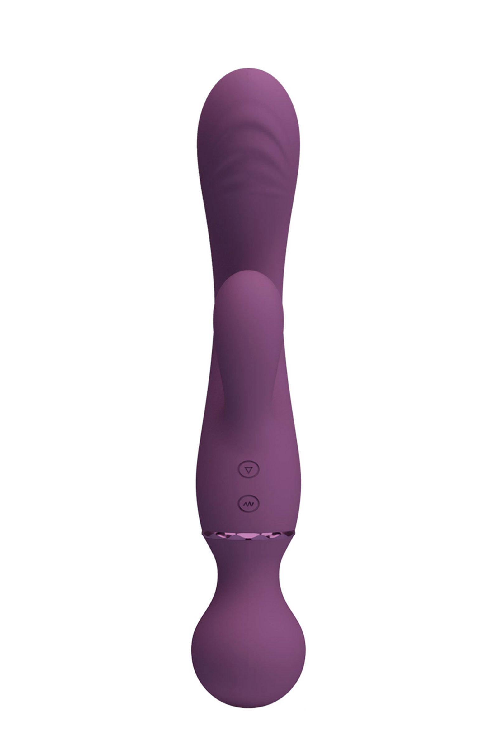 - Vibromasseur à tête incurvée et nervurée, pour une stimulation vaginale ciblée.