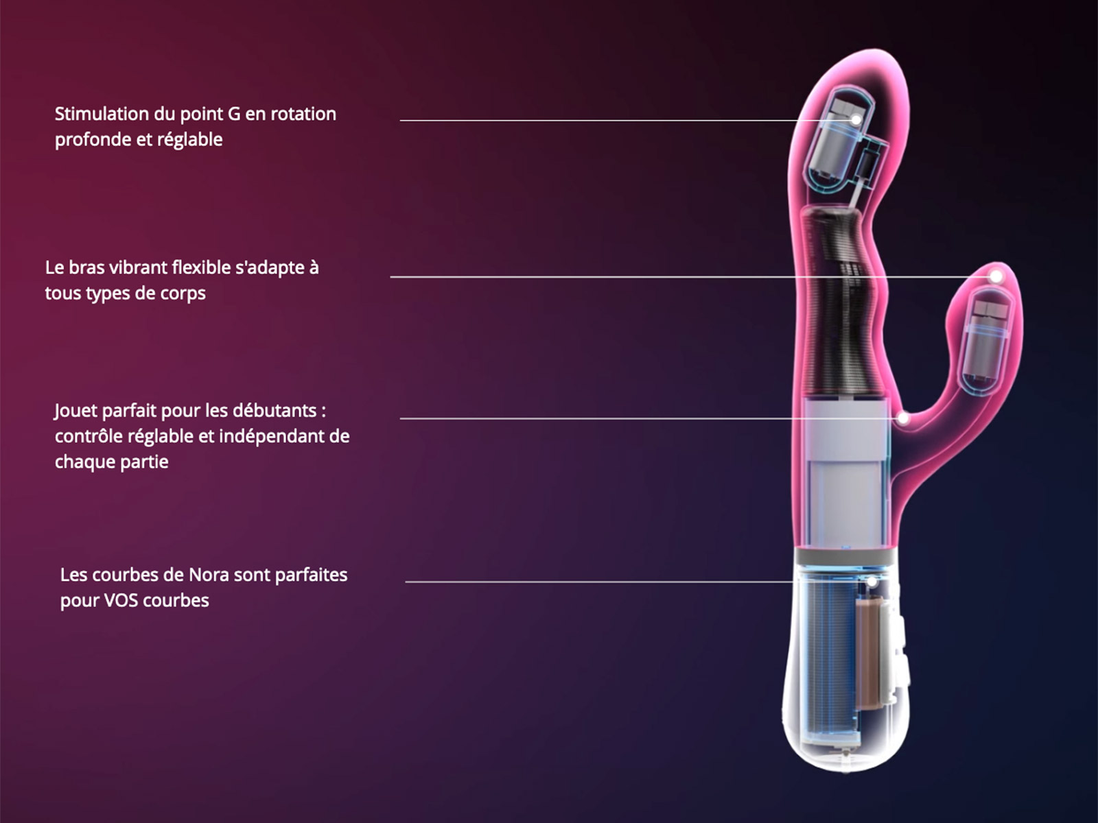 Nora est conçu pour maximiser le plaisir lors de la stimulation du clitoris et du point G.